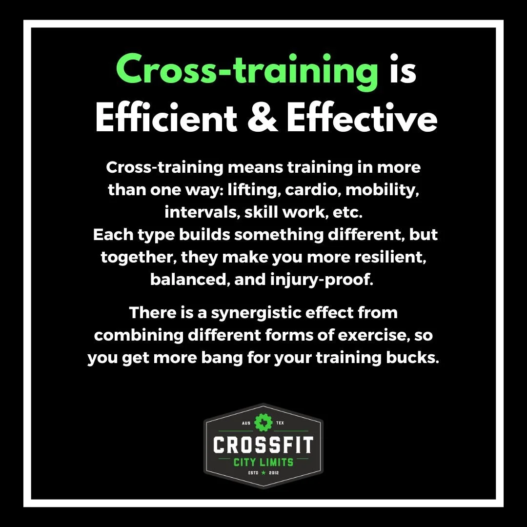 We mix cardio, strength training, and flexibility. In our classes we lift weights, we run, we bike, we row, we do body-weight exercises, we do long slow work-outs, we do short intense work-outs, we utilize intervals, we work mobility, stability, and flexibility, and we mix and match these in as many different ways and variations imagination allows. Routine is the enemy. We work-out in ways that encourage adaptations, but not plateaus. Our workouts are not random. The CrossFit City Limits workout program plans in cycles months ahead of time to ensure the program as a whole works towards improving our all-around fitness.
